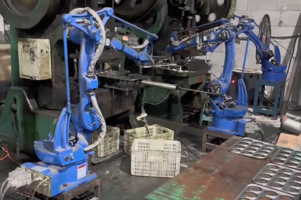 沖壓機(jī)器人是專門針對各種沖床與油壓機(jī)配置,高效替代人工沖壓作業(yè)并實(shí)現(xiàn)自動(dòng)上下料的一種多用途工業(yè)機(jī)器人。沖壓機(jī)器人具有靈活垂直升降、水平旋轉(zhuǎn)、水平軸伸縮、工件旋轉(zhuǎn)、工件翻轉(zhuǎn)等多自由度動(dòng)作,并可根據(jù)沖床高度、送料高度、下料高度自動(dòng)適應(yīng),最大程度滿足各種沖壓產(chǎn)品工藝要求,從而實(shí)現(xiàn)無人化自動(dòng)化智能工廠。沖壓機(jī)器人可以廣泛應(yīng)用于多種批量生產(chǎn)廠家,如金屬鈑金加工沖剪、成形、引伸。還有如交通車輛、鐘表、家電、文具、手工具、五金、電腦等產(chǎn)品沖壓加工,還可加裝自動(dòng)送料機(jī),從事自動(dòng)移送整條生產(chǎn)線加工。同時(shí)沖壓機(jī)器人可根椐企業(yè)自身實(shí)際需求選擇數(shù)控沖床、氣動(dòng)型精密沖床、三圓導(dǎo)柱高速精密沖床或肘節(jié)式連桿式高精密高速?zèng)_床等配套,各系列沖床設(shè)備在五金自動(dòng)化加工中應(yīng)用廣泛,已被眾多加工企業(yè)所認(rèn)可。